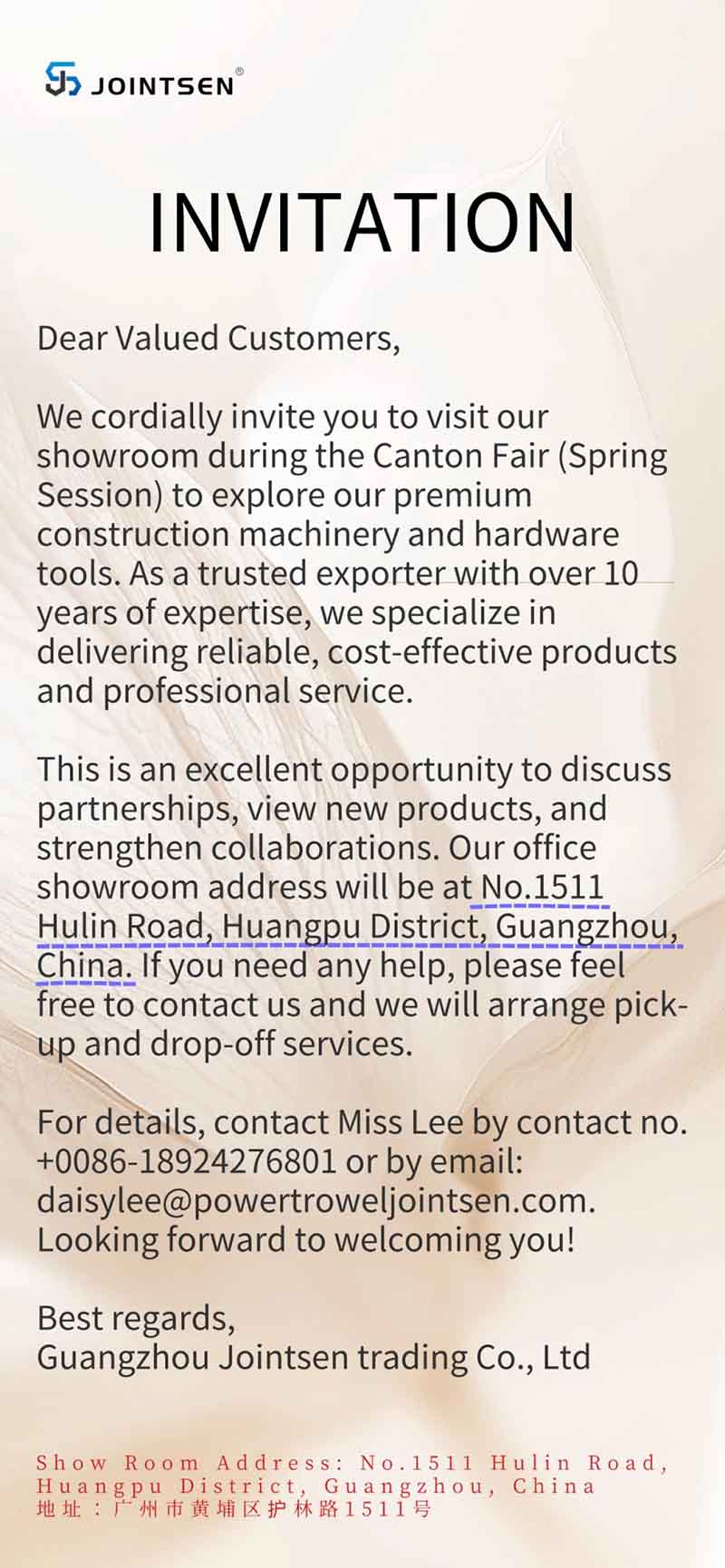 Kanggo rincian, hubungi Miss Lee kanthi kontak NO. + 0086-18924276801 utawa kanthi email: Daisylee@powertroweljointsen.com. Ngarepake sambutan!